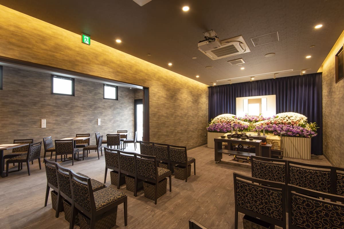 - 矢田山の閑静な住宅街に、ひっそりとたたずむ一日一喪家の貸し切りホール。